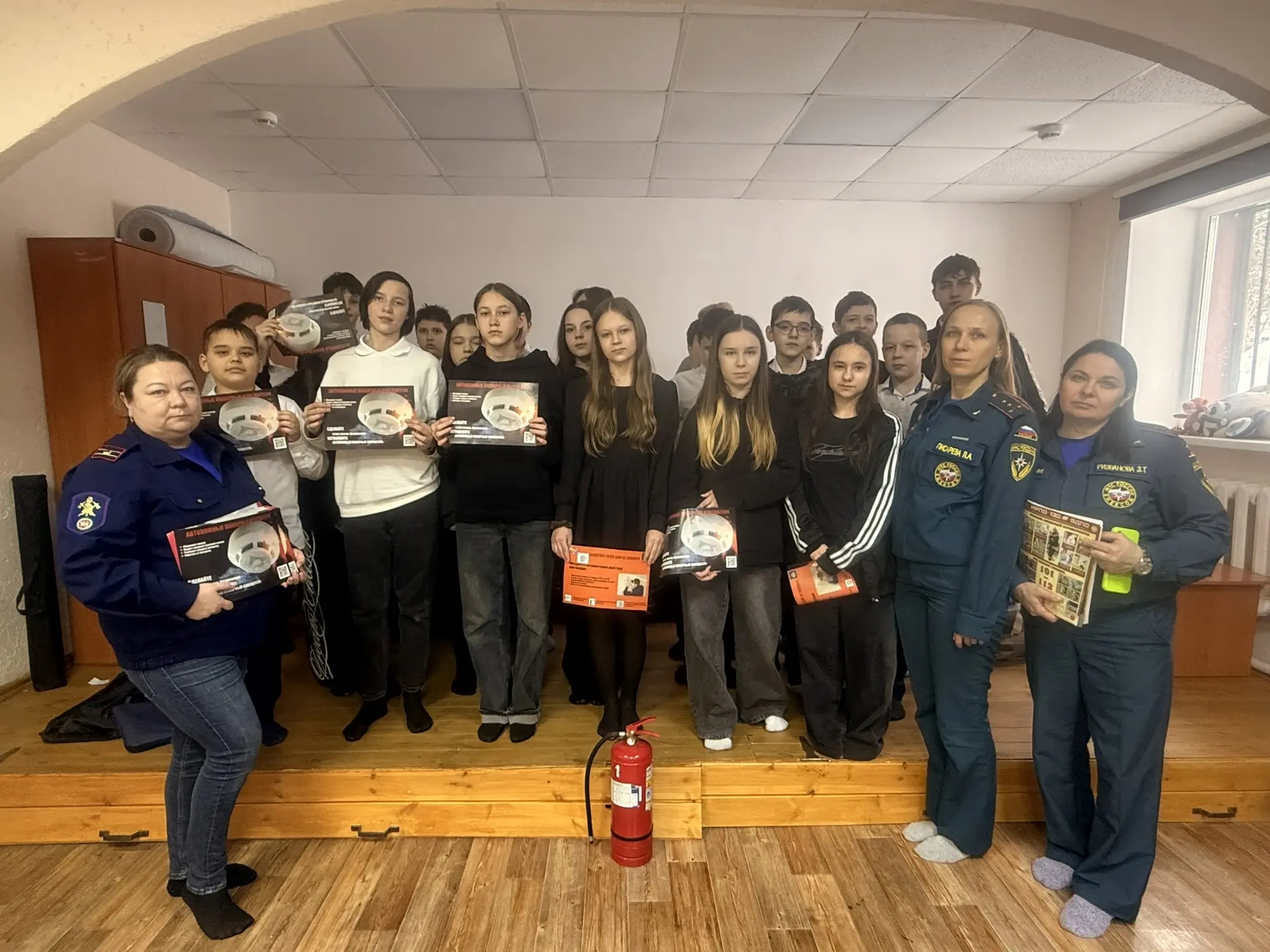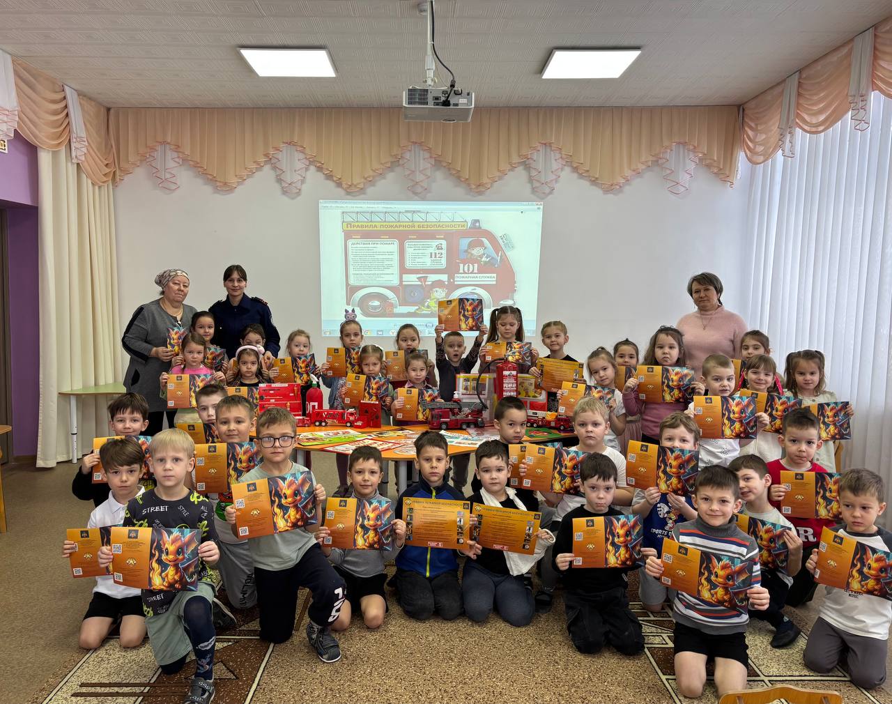 В связи с этим 5 февраля 2026 г. в средней, в старшей, в подготовительной группе МБДОУ «Детский сад №48 «Веснянка» г. Альметьевска» в актовом зале прошло мероприятие, посвященное дню рождения огнетушителя. Занятие началось с правил пожарной безопасности, где первый заместитель председателя совета Альметьевского отделения ТРО «Всероссийское добровольное пожарное общество» Якупова Айгуль Данисовна рассказала детям о необходимости соблюдения правил пожарной безопасности, о действиях при пожаре. Для улучшения усвоения материала с детьми провела игру «опасные и безопасные предметы», «добрый и злой огонь», для правильного представления о роли огня в жизни человека и его опасности при неправильном использовании. Наглядно показала огнетушитель, рассказала из чего он состоит и для чего предназначен. В завершение мероприятия каждый ребенок получил красочный буклет с правилами пожарной безопасности, сделали памятное фото.